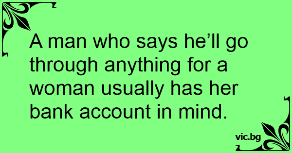 A man who says he’ll go through anything for a woman usually has her bank account in mind.