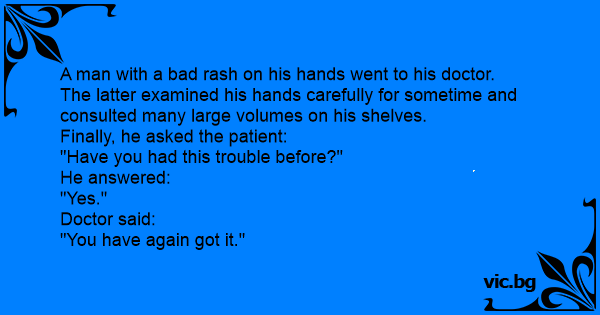A man with a bad rash on his hands went to his doctor.