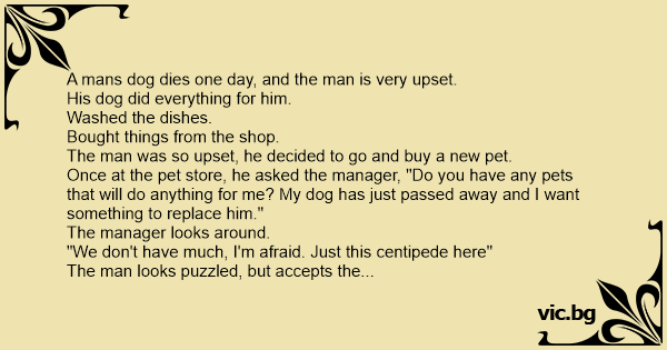 Once at the pet store, he asked the manager, "Do you have any pets that will do anything for me? My dog has just passed away and I want something to replace him."