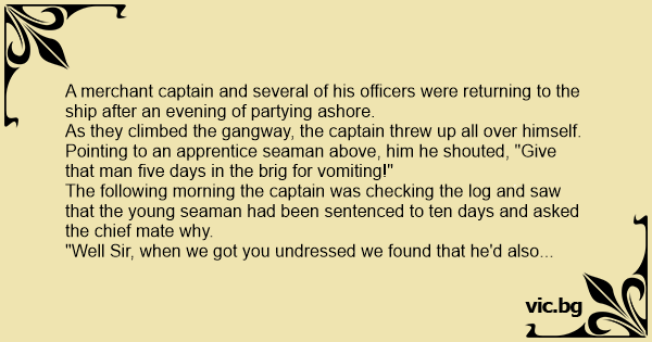 The following morning the captain was checking the log and saw that the young sеамаn had been sentenced to ten days and asked the chief mate why.