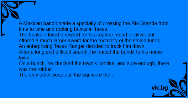 A Mexican bandit made a specialty of crossing the Rio Grande from time to time and robbing banks in Texas.