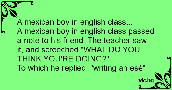 A mexican boy in english class passed a note to his friend. The teacher saw it, and screeched "WHAT DO YOU THINK YOU'RE DOING?"