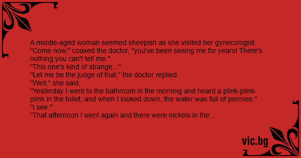 A middle-aged woman seemed sheepish as she visited her gynecologist.