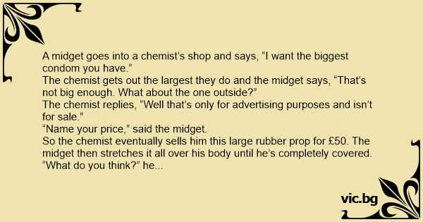The chemist gets out the largest they do and the мidgет says, “That’s not big enough. What about the one outside?”