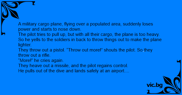 So he yells to the soldiers in back to throw things out to make the plane lighter.