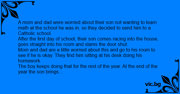 A mom and dad were worried about their son not wanting to learn math at the school he was in, so they decided to send him to a Catholic school.