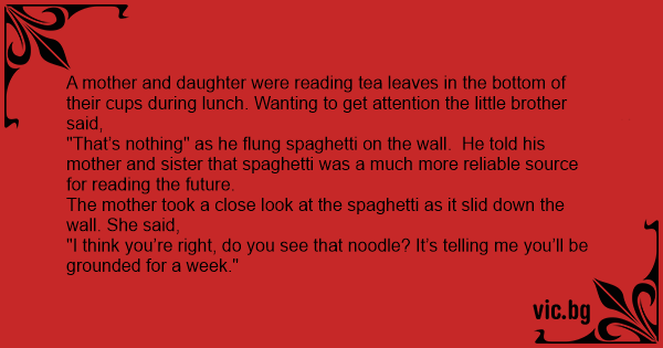"That’s nothing" as he flung spaghetti on the wall. He told his mother and sister that spaghetti was a much more reliable source for reading the future.