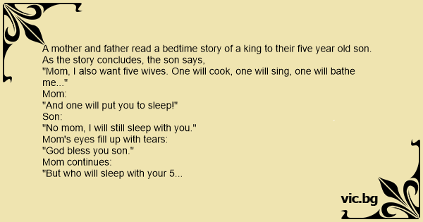 A mother and father read a bedtime story of a king to their five year old son. As the story concludes, the son says,
