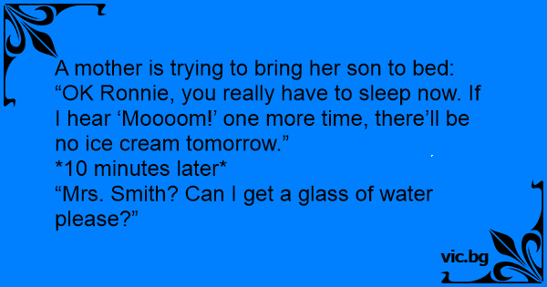 “OK Ronnie, you really have to sleep now. If I hear ‘Moooom!’ one more time, there’ll be no ice cream tomorrow.”