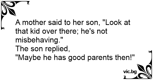 A mother said to her son, "Look at that kid over there; he's not misbehaving."