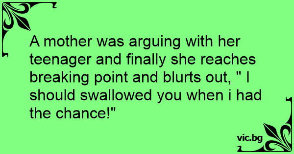 A mother was arguing with her teenager and finally she reaches breaking point and blurts out, " I should swallowed you when i had the chance!"
