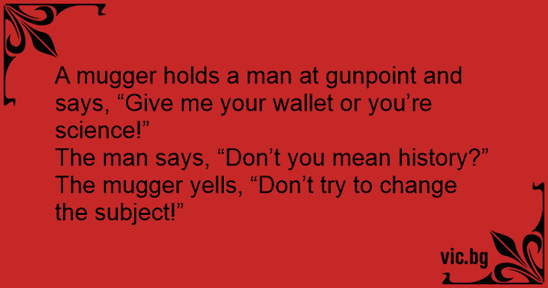 A mugger holds a man at gunpoint and says, “Give me your wallet or you’re science!”