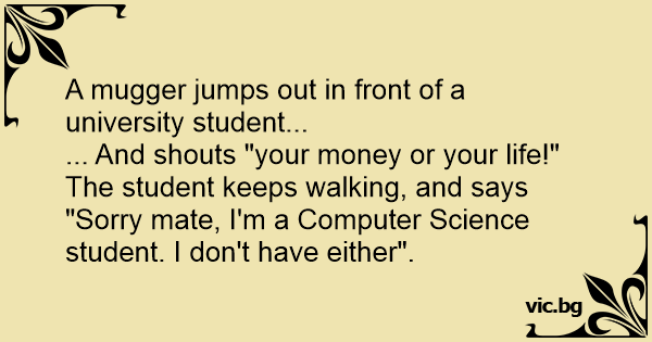 The student keeps walking, and says "Sorry mate, I'm a Computer Science student. I don't have either".