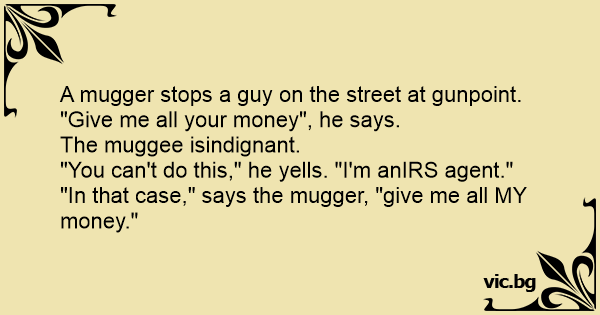 "In that case," says the mugger, "give me all MY money."