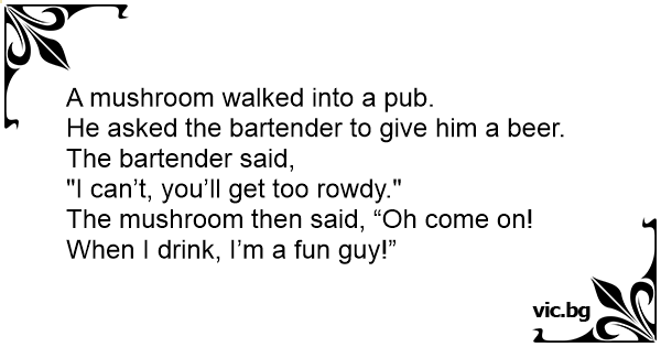 The mushroom then said, “Oh come on! When I drink, I’m a fun guy!”