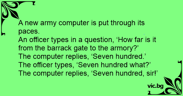 An officer types in a question, ‘How far is it from the barrack gate to the armory?’