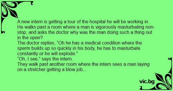 The doctor replies, “Oh he has a medical condition where the sреrм builds up so quickly in his body, he has to маsтurвате constantly or he will explode.”