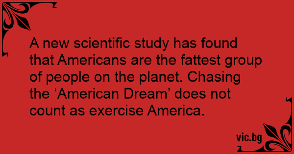 A new scientific study has found that Americans are the fattest group of people on the planet. Chasing the ‘American Dream’ does not count as exercise America.