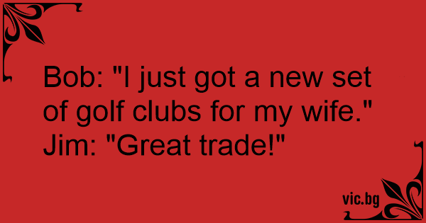 Bob: "I just got a new set of golf clubs for my wife."