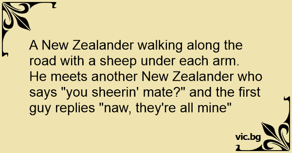 He meets another New Zealander who says "you sheerin' mate?" and the first guy replies "naw, they're all mine"
