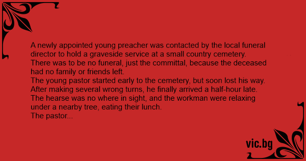 A newly appointed young preacher was contacted by the local funeral director to hold a graveside service at a small country cemetery.