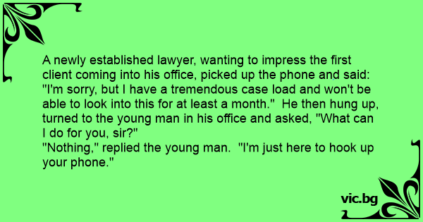 A newly established lawyer, wanting to impress the first client coming into his office, picked up the phone and said: