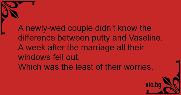 A newly-wed couple didn’t know the difference between putty and Vaseline.
