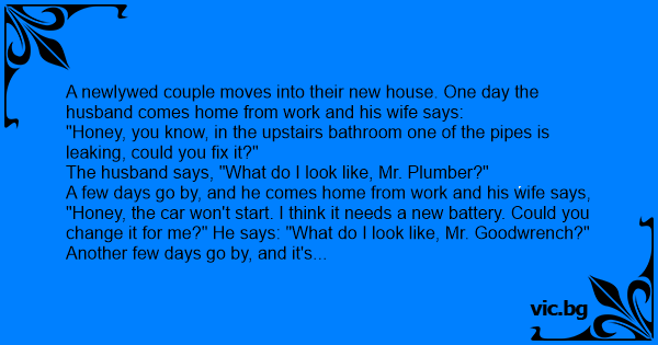 Мъж се прибира вкъщи. Съпругата му казала:
