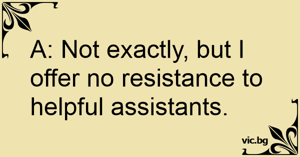 A: Not exactly, but I offer no resistance to helpful assistants.