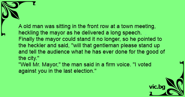 "Well Mr. Mayor," the man said in a firm voice. "I voted against you in the last election."