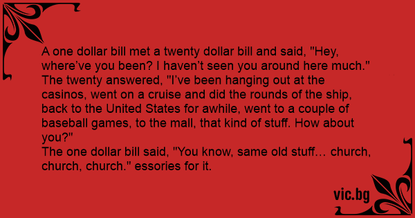 The one dollar bill said, "You know, same old stuff… church, church, church." essories for it.