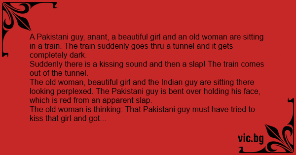 "That Pakistani guy must have moved to kiss me, but kissed the old lady instead and got slapped."
