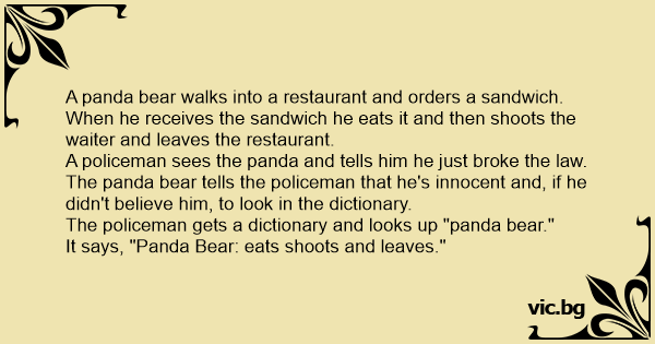 A panda bear walks into a...