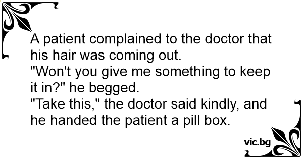 "Take this," the doctor said kindly, and he handed the patient a pill box.