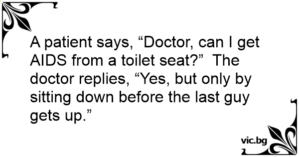 A patient says, “Doctor, can I get AIDS from a toilet seat?” The doctor replies, “Yes, but only by sitting down before the last guy gets up.”