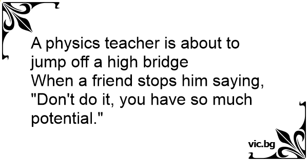A physics teacher is about to jump off a high bridge
