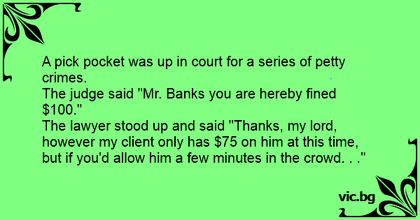 The lawyer stood up and said "Thanks, my lord, however my client only has $75 on him at this time, but if you'd allow him a few minutes in the crowd. . ."