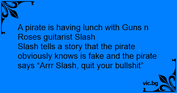 Slash tells a story that the pirate obviously knows is fake and the pirate says “Arrr Slash, quit your вullshiт”