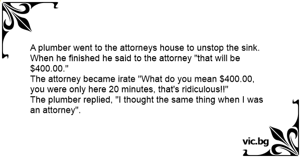 The plumber replied, "I thought the same thing when I was an attorney".
