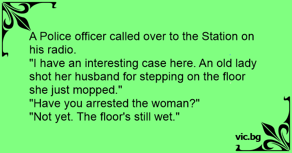 "I have an interesting case here. An old lady shot her husband for stepping on the floor she just mopped."
