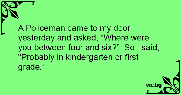 A Policeman came to my door yesterday and asked, “Where were you between four and six?” So I said,