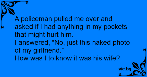A policeman pulled me over and asked if I had anything in my pockets that might hurt him.