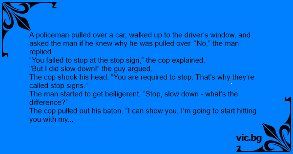 The man started to get belligerent. “Stop, slow down - what’s the difference?”