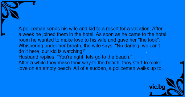 A policeman sends his wife and kid to a resort for a vacation. After a week he joined them in the hotel. As soon as he came to the hotel room he wanted to make love to his wife and gave her "the look".