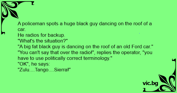 Полицай забелязва в Бронкс, негър да танцува на покрива на колата. Обажда се в централата:
