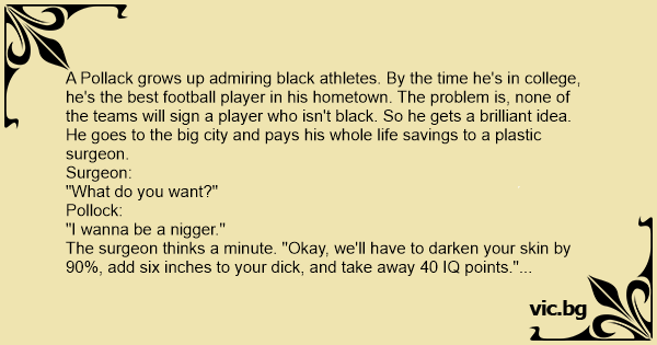 The surgeon thinks a minute. "Okay, we'll have to darken your skin by 90%, add six inches to your diск, and take away 40 IQ points."