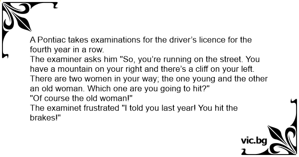 A Pontiac takes examinations for the driver’s licence for the fourth year in a row.