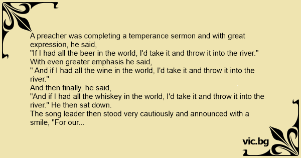 A preacher was completing a temperance sermon and with great expression, he said,
