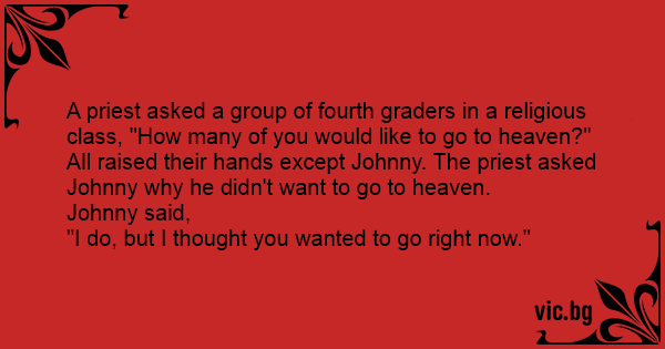 All raised their hands except Johnny. The priest asked Johnny why he didn't want to go to heaven.