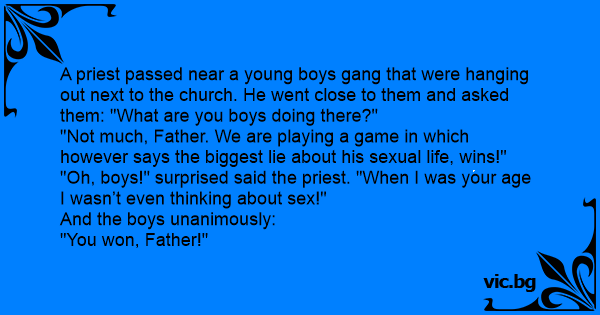 "Not much, Father. We are playing a game in which however says the biggest lie about his sеxuаl life, wins!"